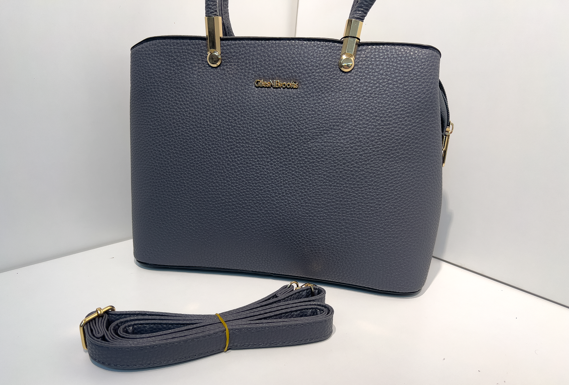 이 가방은 차분하고 모던한 그레이 컬러가 돋보이는 토트&숄더 겸용 백입니다. 고급스러운 골드 하드웨어와 부드러운 질감의 합성가죽으로 제작되어 심플하면서도 우아한 매력을 지녔습니다. 내부는 중앙 지퍼 포켓과 다중 수납공간으로 구성되어 실용성을 극대화했으며, 탈부착 가능한 롱 스트랩이 포함되어 토트, 숄더, 크로스백 등 다양한 스타일로 활용할 수 있습니다. 비즈니스 룩부터 캐주얼한 데일리 코디까지 폭넓게 어울려 실용성과 스타일을 동시에 갖춘 아이템입니다.