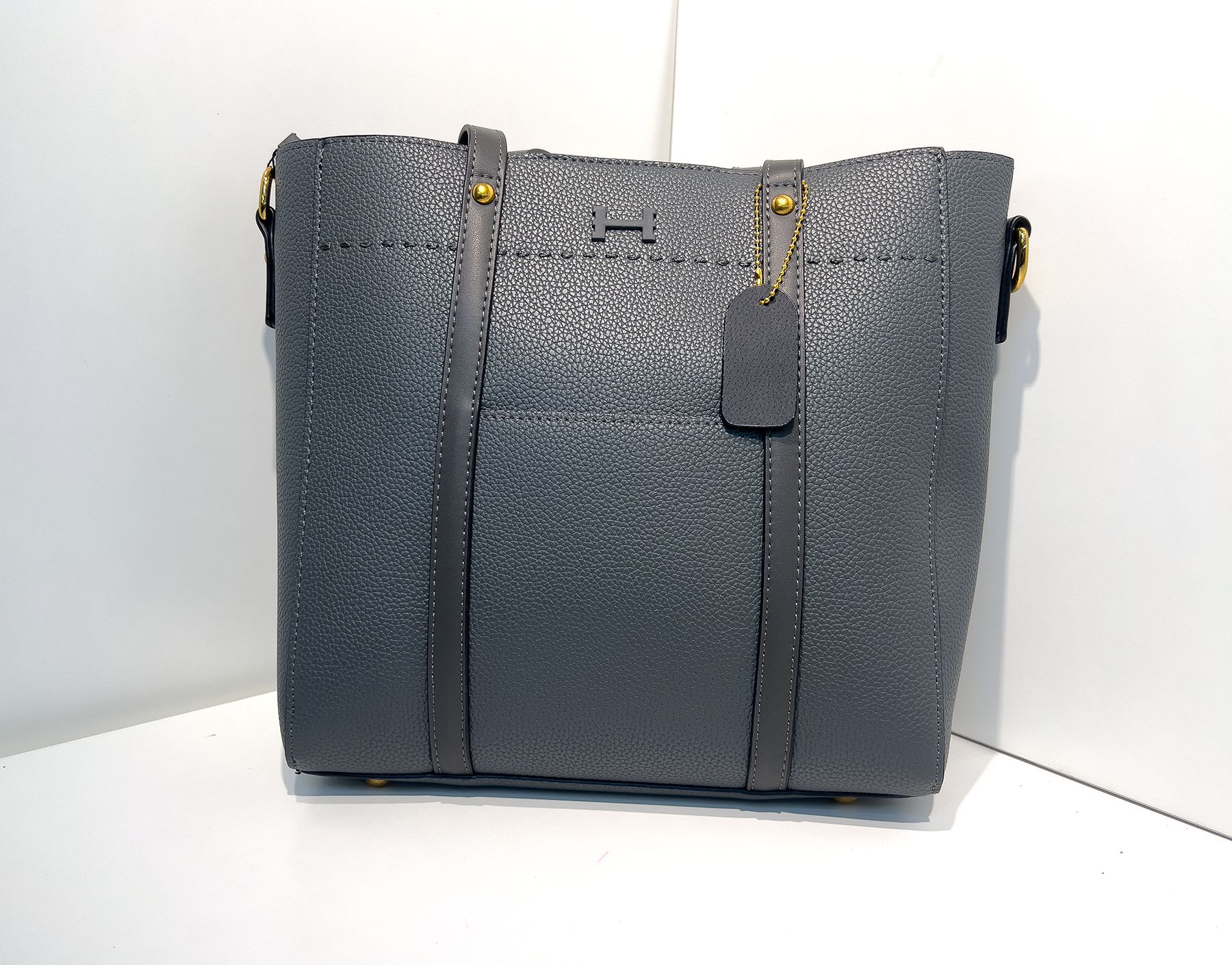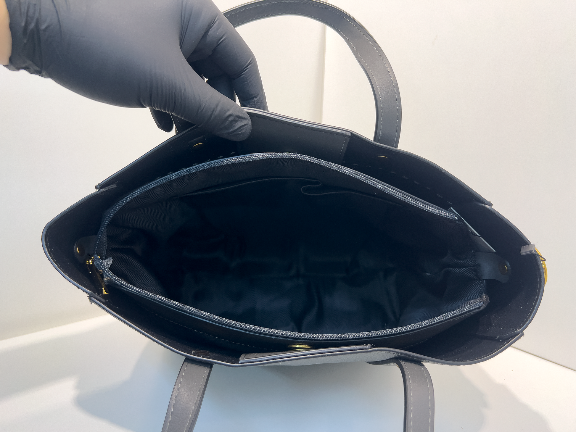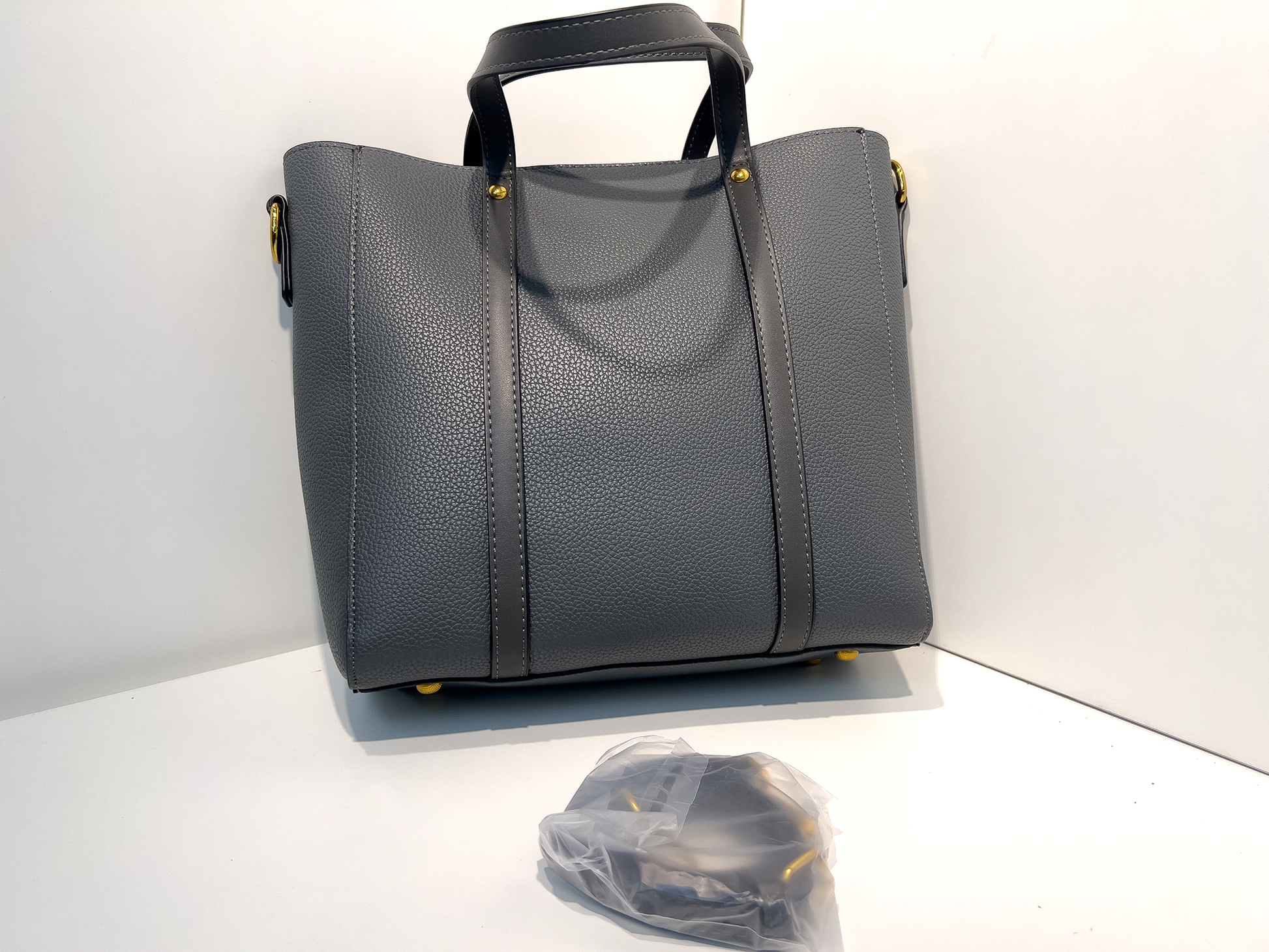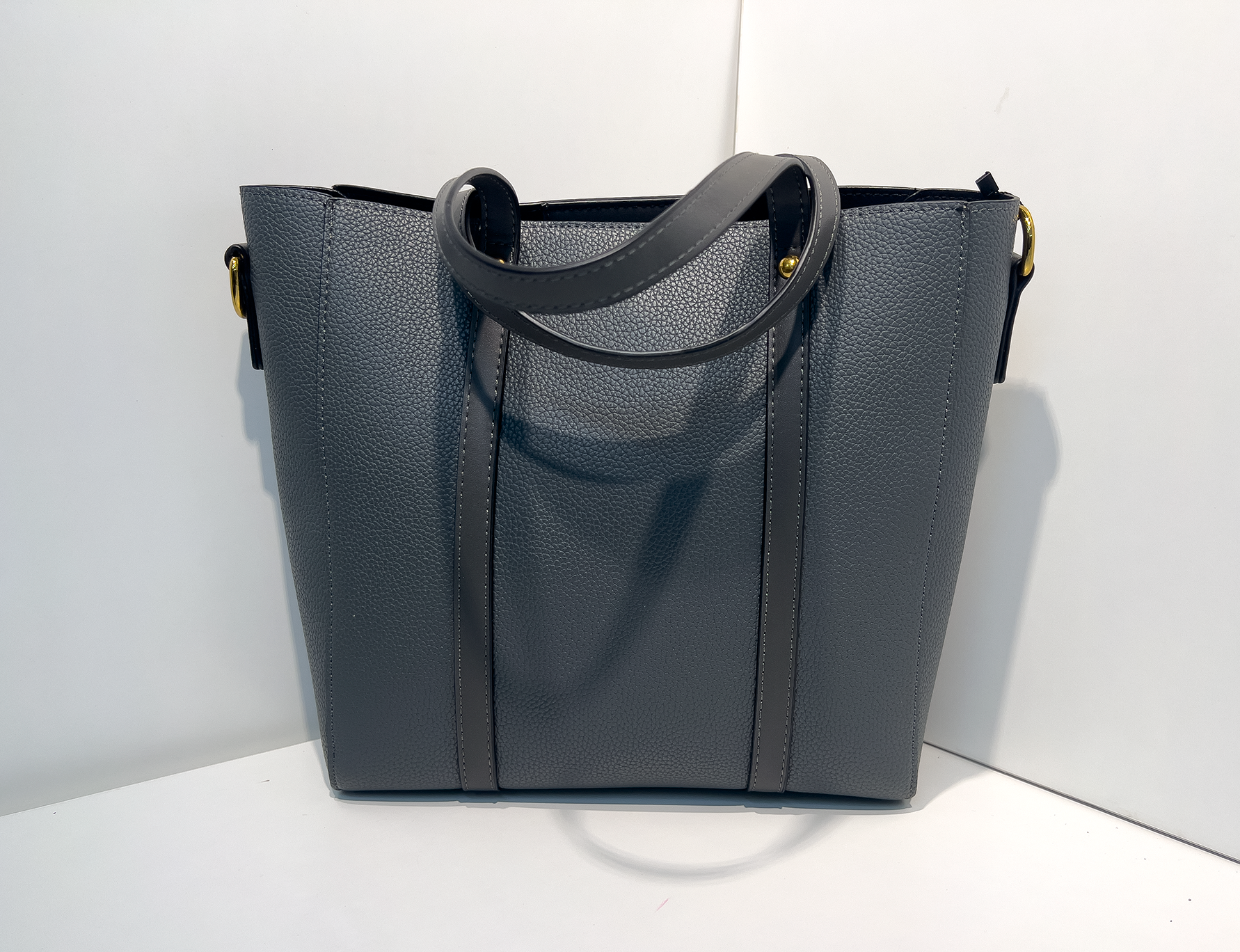 이 가방은 차분하면서도 세련된 그레이 컬러로 제작된 토트&숄더 겸용 백입니다. 부드러운 질감의 합성가죽과 고급스러운 골드 하드웨어가 조화를 이루어 고급스러운 분위기를 완성합니다. 넓은 내부 공간과 지퍼 포켓이 있어 소지품을 체계적으로 정리할 수 있으며, 견고한 사각 실루엣이 모양을 깔끔하게 유지해줍니다. 또한 탈부착 가능한 롱 스트랩이 포함되어 손에 들거나 어깨에 메는 등 상황에 맞춰 다양한 스타일로 연출이 가능합니다.